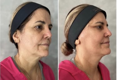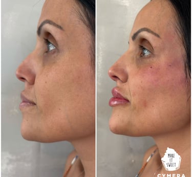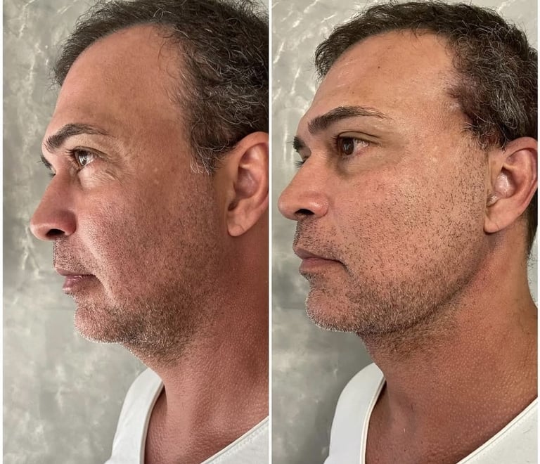 Reposição de volume e contorno com ácido hialurônico em pontos estratégicos (maçãs do rosto, olheiras, lábios, mandíbula, queixo). Deixando a face mais preenchida e harmônica.
